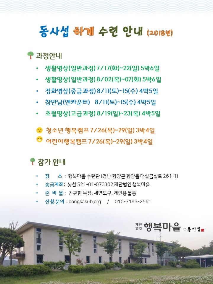 [안내] 2018년 하계 수련 안내